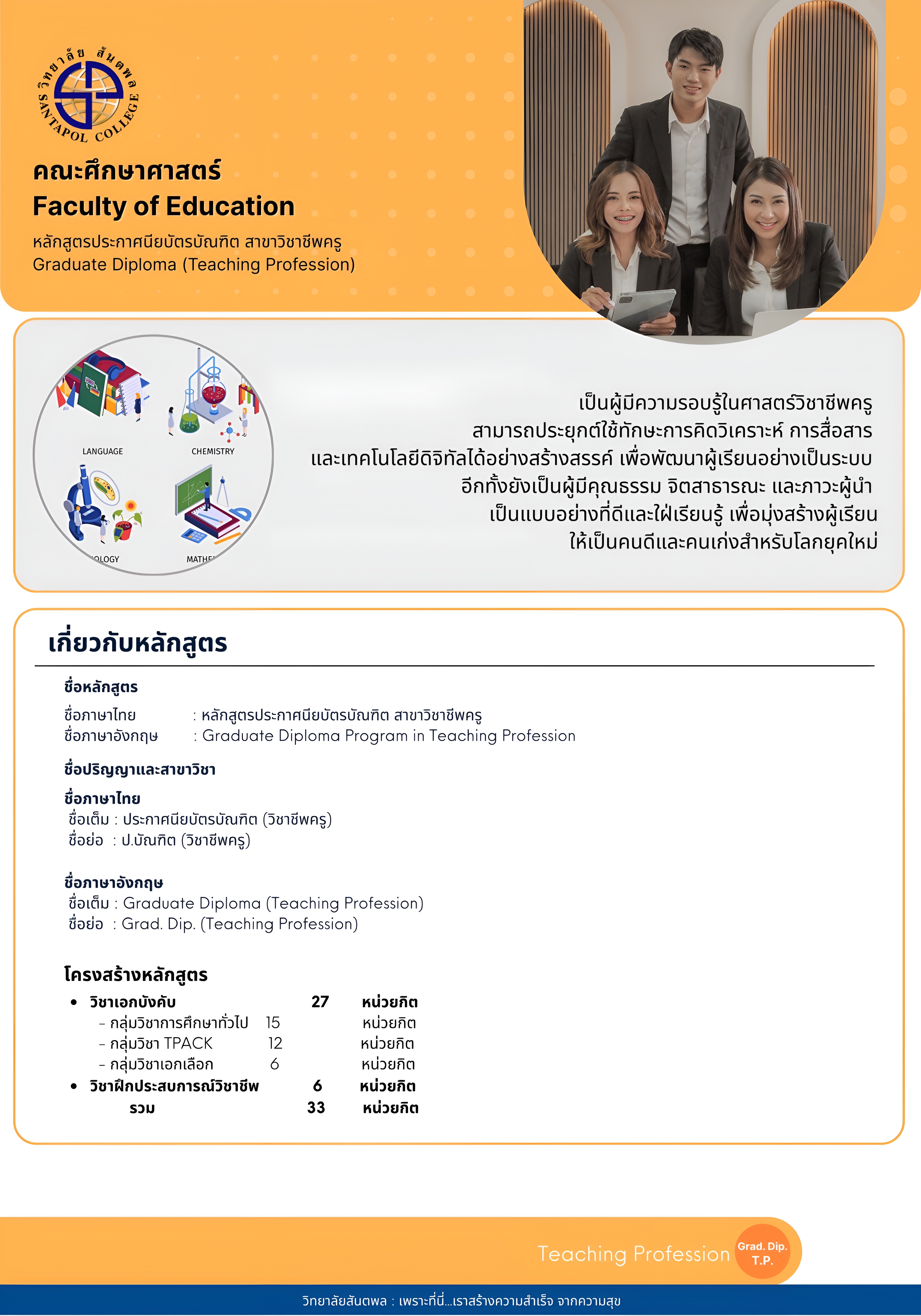 หลักสูตรประกาศนียบัตรบัณฑิต สาขาวิชาชีพครู